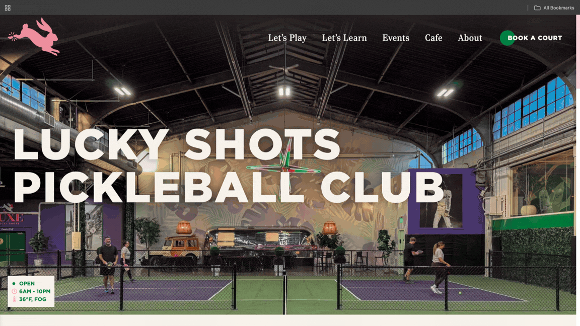 With the new brand foundation established, I spearheaded a full website redevelopment. After meeting with several agencies, I selected Brandography based on their ability to balance strong SEO/AEO expertise with elevated design execution. I directed the site’s strategy and structure to ensure it functioned as both a high-performing acquisition channel and an educational resource for new players. We built dedicated landing pages for class schedules and open play and implemented a comprehensive SEO strategy to drive organic discovery. The site reduced friction for first-time players by answering key questions and positioning Lucky Shots as an accessible, welcoming club.